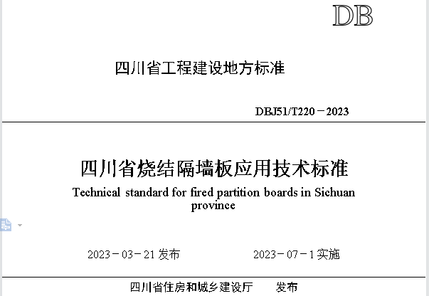標準助推綠色新材料——《四川省燒結(jié)隔墻板應用技術(shù)標準》于近日批準發(fā)布